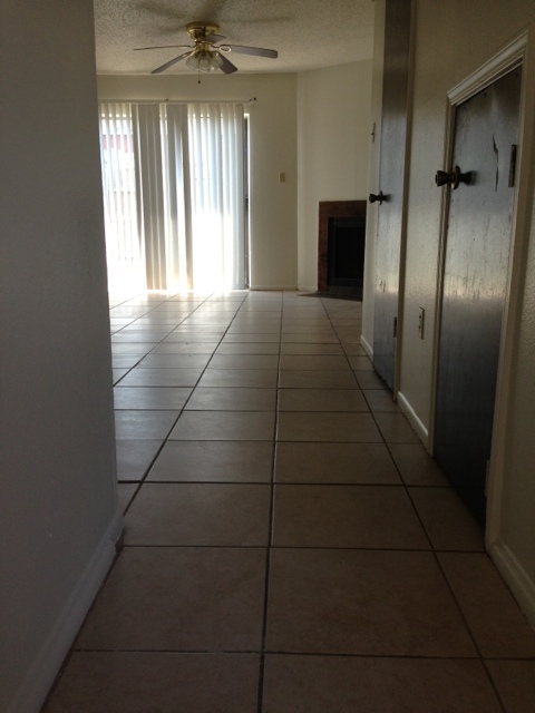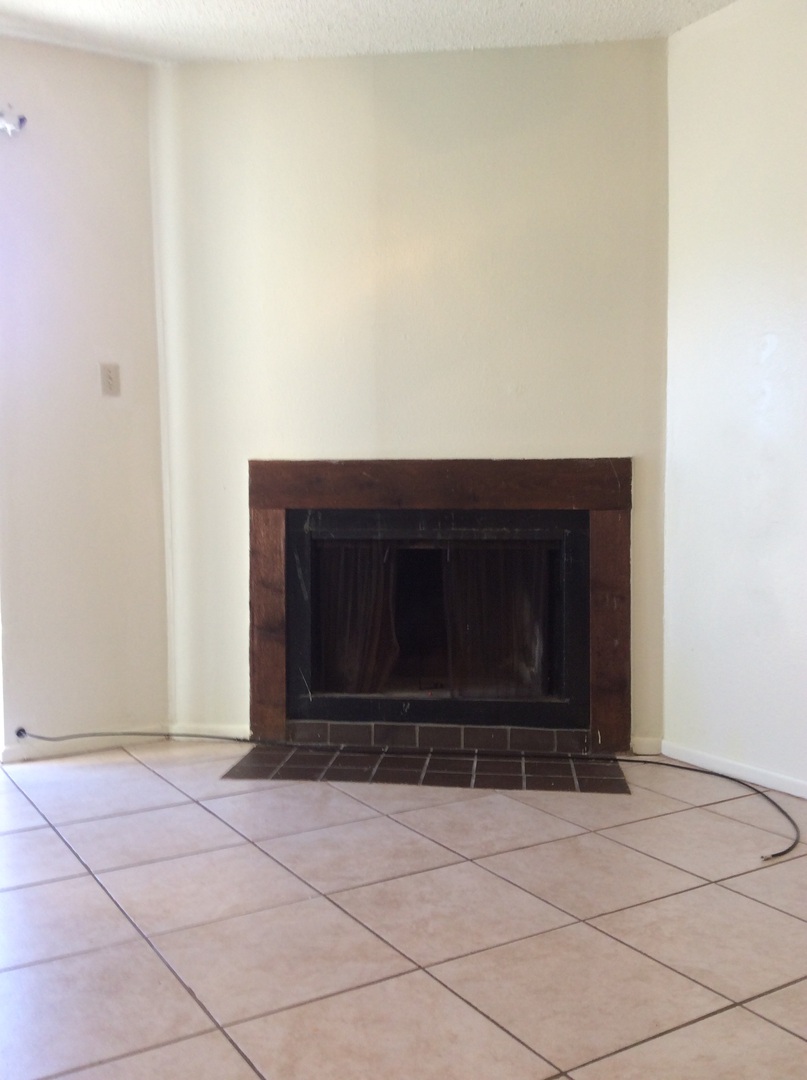 Two bedroom 1 1/2 bath townhome with ceramic tile floors and a fireplace in the living room